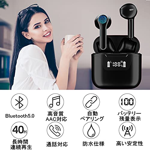 【ノイズキャンセリング技術搭載&LED残量表示】新のノイズキャンセリング技術を採用しており、環境音と声を識別して、雑音や周囲のノイズを効果的にカットして、クリアな音声を提供して、快適な通話を実現します。電車やバスなどで雑音が多い場所でもクリアな通話を楽しむことができます。また、バッテリー残量をLEDスクリーンにて表示されますので、暗い環境でも充電ケースのバッテリー残量が一目で確認できますので、電池不足のご心配が不要です。