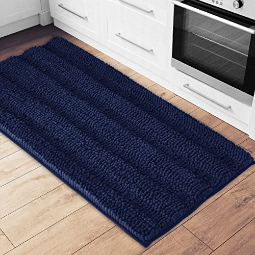 NICETOWN 吸水 バスマット きっちんまっと お手入れ簡単 ふわふわ シェニール 60x120cm ブルー 一枚入