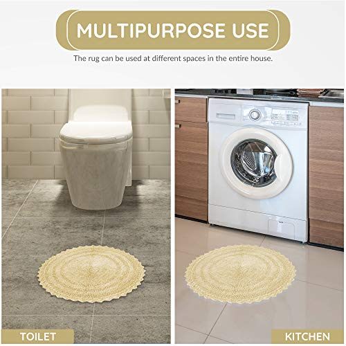 スタイリッシュなかぎ針編みのバスラグ:綿100%のバスラグは丸型24インチ(直径61 cm)で、浴槽、シャワー、トイレ、洗面台、洗面台の横に置いて、快適で暖かく、乾いた場所に立つように設計されています。