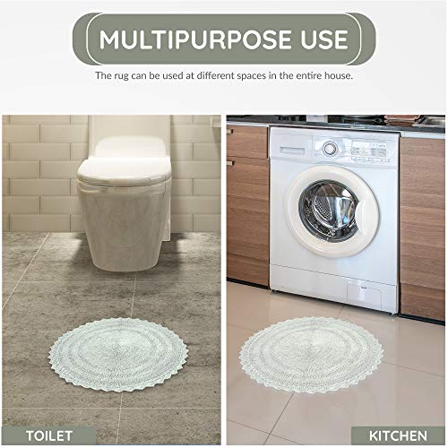 スタイリッシュなかぎ針編みのバスラグ:綿100%のバスラグは丸型24インチ(直径61 cm)で、浴槽、シャワー、トイレ、洗面台、洗面台の横に置いて、快適で暖かく、乾いた場所に立つように設計されています。