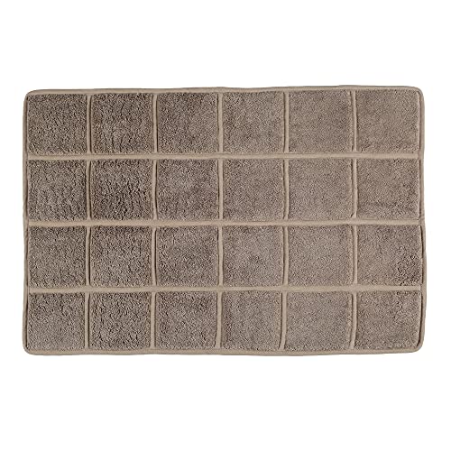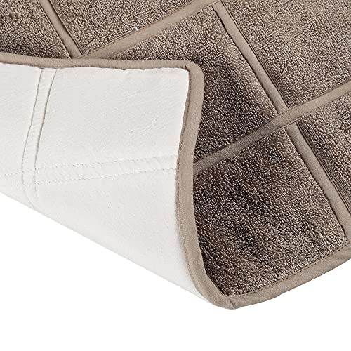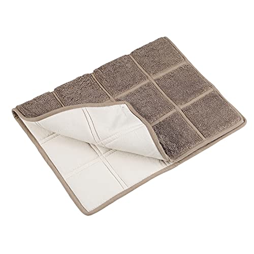 素材:バスマットは100%コットン製で、中層にPUフォーム(ポリウレタン)をはさんだ仕様となっています。テリー素材で、幅23.6インチ(60 cm)長さ15.7インチ(40 cm)のバスマットです。