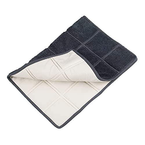 素材:バスマットは100%コットン製で、中層にPUフォーム(ポリウレタン)をはさんだ仕様となっています。テリー素材で、幅23.6インチ(60 cm)長さ15.7インチ(40 cm)のバスマットです。