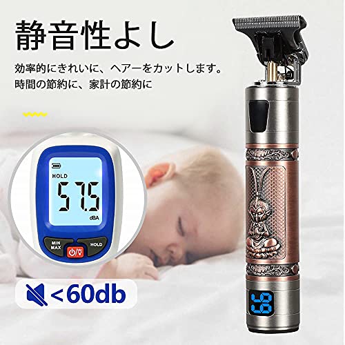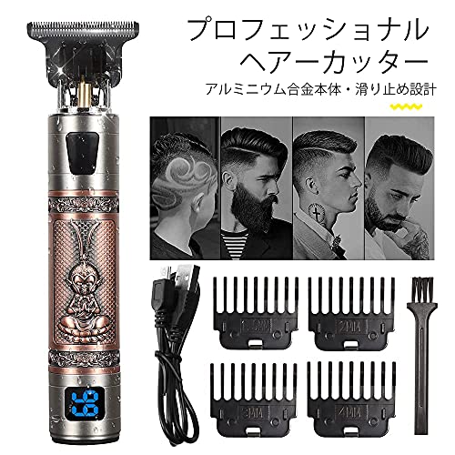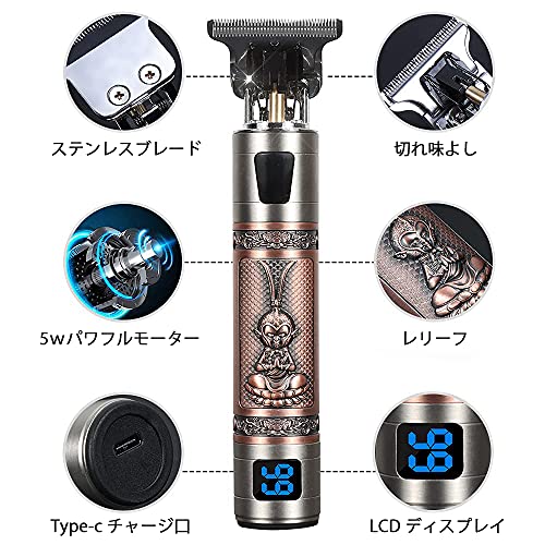 Botten T型電動バリカン シェーバー LCDディスプレイ レリーフ Type-c USBチャージ 全身防水 水洗い可 赤銅色 悟空