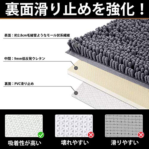 【滑り止めPVC】バスマットの裏面に低反発ウレタンが追加されているので、ふわふわ感もっとアップします!PVC滑り止めがしっかり施されいるので子供とお年寄りがいるの家庭でも安心してお使いいた