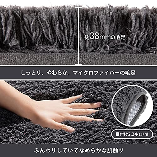 【吸水性・速乾性抜群】吸水性・速乾性に優れたマイクロファイバーを採用していて、繊維は一本で数吸水穴があり、より効率的に大容量の吸水が可能です。濃密な絨毛と約40センチ厚さで目付け2.2キロ/m2で、お風呂上がりの水分をすぐに吸い取り、優しい触感で足の裏も癒されます。速乾性にすぐれているので、何人かお風呂に入った後でもサラサラの使い心地で、ふんわりの感触をキープし、最後の人までぺたぺたならなく、気持ちよくお使いいただけます。