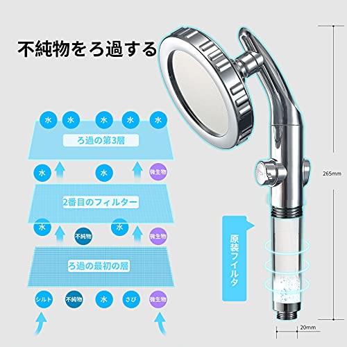?【極細水流】このシャワーヘットは精密の散水板を採用しており、シャワー穴の穴径は0.3mmで、水流は幅広くて細密で、まるでシルクのような、肌に優しいに感じられるに仕上げります。Spa入浴体験をお楽しめます。シャワーヘッドは浄水機能があり、フィルターも内蔵され、水中の塩素と不純物を有効に除去できます。【ご注意??】:1.コットンフィルターの設置方向にご注意ください。2. 3~4っか月にコットンフィルターを取り替えてください。
