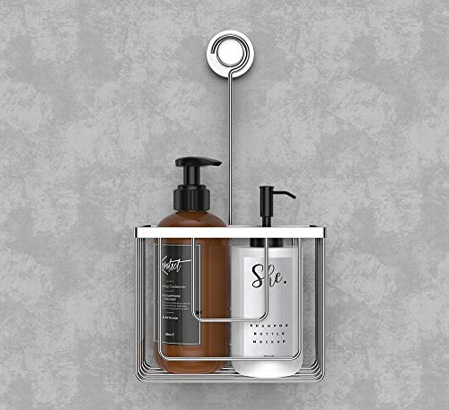 バスルームストレージ: シャワーキャディ棚は、ボトル、石鹸、カミソリなどを整理します。