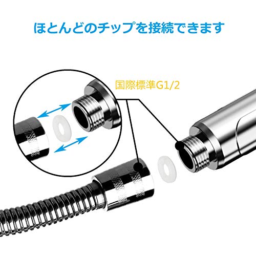 ほとんどのシャワーヘッドと接続可能:防爆ステンレス製シャワーホースは国際汎用G1/2サイズを採用し、ほとんどのシャワーヘッドと接続可能で、安心してご購入ください。