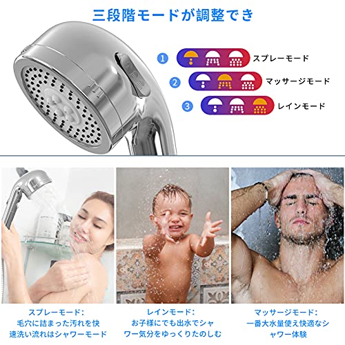 BLUE POWER シャワーヘッド シャワー 3段階モード ストップボタン付き 低水圧増圧 - 節水 浄水 水漏れ防止 取り付