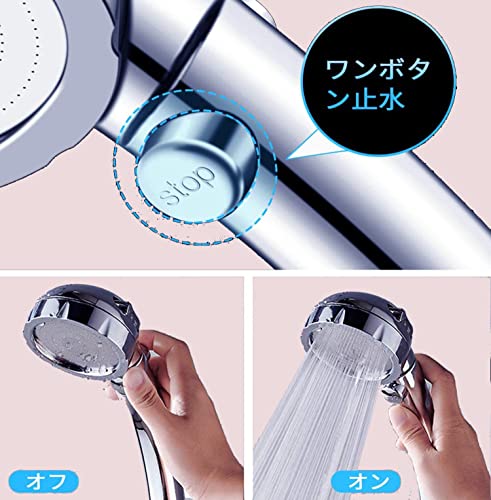 シャワーヘッド,ハンドヘルドシャワー,Handheld Showerhead,3段階モード ストップボタン 節水 増圧 低水圧対応 360°