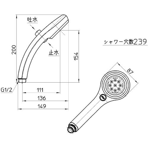 極細ストレート水流、ストップ機能付、最高使用温度:60度