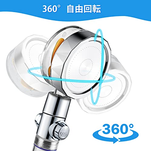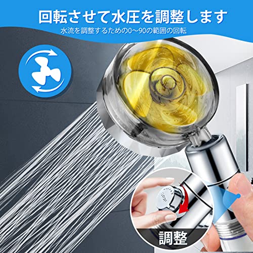 シャワーヘッド プロペラ駆動のハンドヘルドシャワーヘッド 増圧 360°調整 マルチフィルタ 節水 頭皮ケア 清