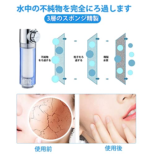 【マルチフィルターデザイン】トリプルフィルターは、PPコットンフィルターエレメント、ミネラルストーン、フィルタースクリーン、余分な不純物を取り除き、硬水を柔らかくする多層フィルター保護で構成され、より健康で滑らかな肌、柔らかくて強い髪に貢献します、快適なシャワータイムをお楽しみいただけます!