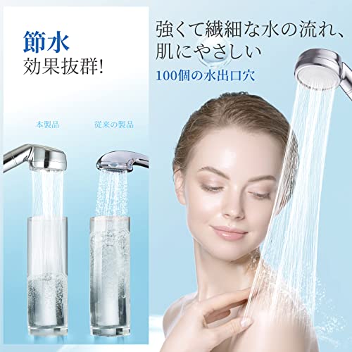 【低圧用 シャワーヘッド】上質なABS材質を采用して、高級感溢れるシルバー色のデザイン、質感は優れます。0.35 mm穴の超微細水流は、通常の水よりも強く、きめ細かく、肌当たりが柔らかいです。衝撃力がある水の流れを肩や首筋、背中に当てると、スパのように心地良い感じが得られ、一日の疲れを洗い流します!