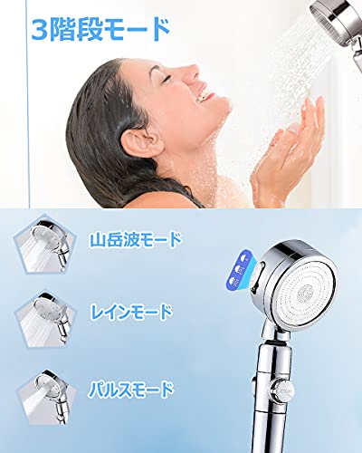 ?【3階段モード】(1)3つのモードがあります。(1)パルスモード(2)レインモード(3)あなたの気持ちやニーズに合わせたマウンテンウェーブモード。各モードはあなたとあなたの家族に最高のシャワー体験をもたらします。 水はきれいで均一で、肌を優しく快適に感じさせます。 顔、敏感肌、ペットなどの洗浄に最適な水流です。必要に応じて適切な水流を選択してください。