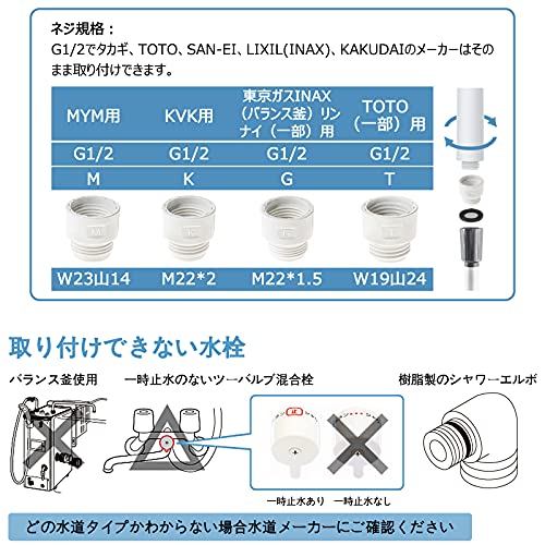 【シャワーヘッドの使い易さ】(1)本体はABS高級プラスチックを採用し、手触り感がよく、家族の健康を守るや環境にやさしい素材です。(2)角度調節自由自在に!シャワーフック付属です。(3)手元止水機能が髪を洗ったり、洗顔したりと、ちょっと止めたい時に便利です、また、軽量で片手で操作でき、長時間持ちにも疲れません。(4)三つモードがあって、子供、老人に適する柔らかな水あたりのスプレーモード;大人に適する一日疲労解消、気分爽快になるの混合モード;浴室清掃に水圧強いの強力モード、3段階の高圧にすると、お掃除などで困ることはありません。手元で自由調整できます。(5)ネジサイズG1/2、またアダプター付き、ほとんどのホースメーカ