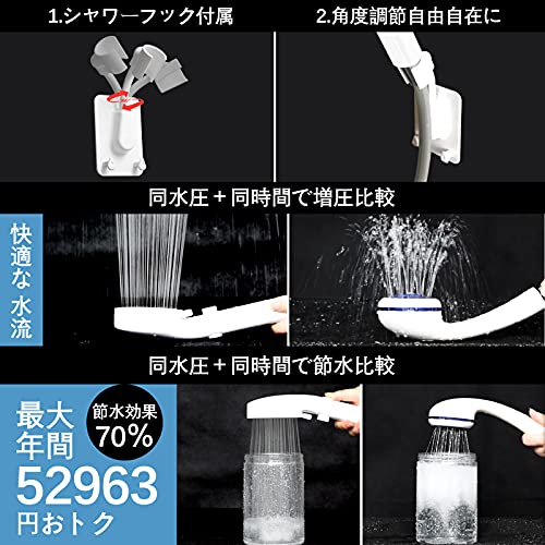 GSODC シャワーヘッド 節水シャワーヘッド 高水圧 しゃわーへっど 増圧 水圧 強い キモチイイ水流 角度自由調