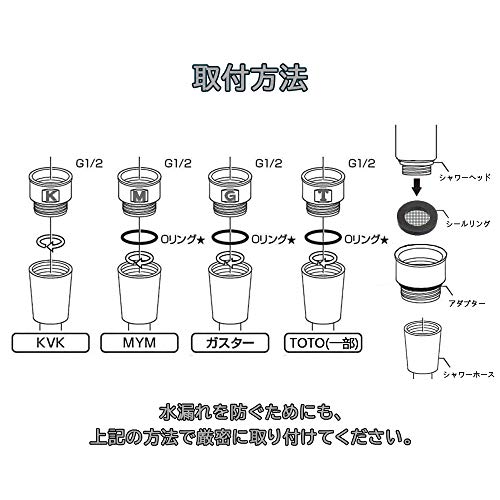 【適合するシャワーヘッドブランド】KAKUDAI(カクダイ)、TAKAGI(タカギ)、Arromic(アラミック)、TOTO(トートー)の一部製品、SANEI(三栄水栓製作所)、INAX(バランス釜以外)の一部製品、YuKoの一部製品に適合します。