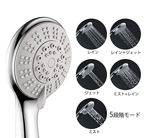 【5段階モードの調節可能】レバーを回すだけで5段階の出水モードを自由に切り替えることができます。入浴中の様々なニーズに合わせて、より快適のお風呂体験を楽しめます。(1)ジェット+レイン:ジェットの力で毛穴に詰まった皮脂や汗を浮き上がらせ、一気にシャワーで洗浄; (2)ミスト:毛穴の奥に残ったファンデーションや皮脂汚れなどを優しく洗浄; (3)ミスト+レイン:お肌が敏感な方からお子様やペットに;(4)ジェット:頭皮や肩、腰などへの水力マッサージで頭からつま先まで強めの刺激でリラックス; (5)レイン:ファインバブルの洗浄力をシャワーモードで