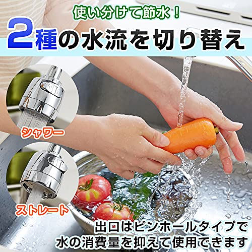蛇口 シャワーヘッド 節水 首振り 360度可動式 2段階モード ストレート水流 シャワー水流 キッチン 水道