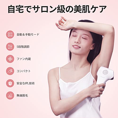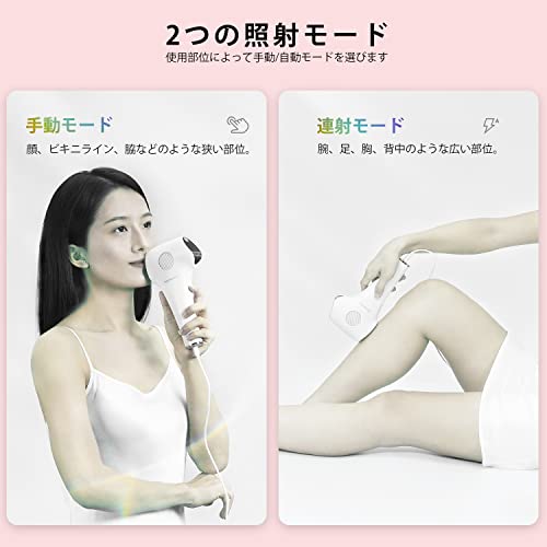 ?お肌に優しいIPL技術?最新IPLパルス光脱毛技術を採用して、毛根に働きかけ、毛根を弱らせて毛根が自然に脱落します。使用後は毛が自然に脱落し、生える速度を抑制できます。モードを選ぶだけで、手軽にエステに行ったような細やかなムダ毛処理を実現されます。また、ボタンは2つしかなく、操作がとても簡単で、初心者の方にもスムーズに取り扱うことができます。
