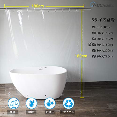 AooHome シャワーカーテン 透明 ビニールカーテン 180x180cm バスカーテン ユニットバス 浴室 間仕切り クリア 軽