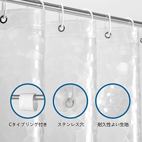 【防水防カビ加工】PEVA材料を採用し、防水防カビ効果がよい、衛生的で清潔に保つ、柔らかくて肌触りよい、バスタイムが快適になるお風呂用カーテンです。