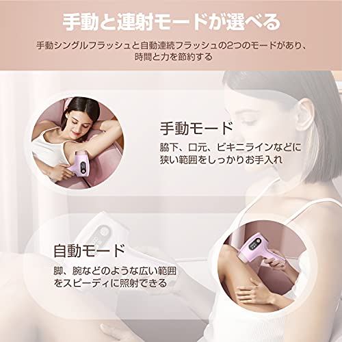 【2モード&全身お手入れ】手動と自動2種類のモードが備えています。広い範囲だけでなく、脇、口元、指など狭いのにも満足できます。さらに顔・からだ・美肌・VIOとの4つの専用出力モードを設置されます。