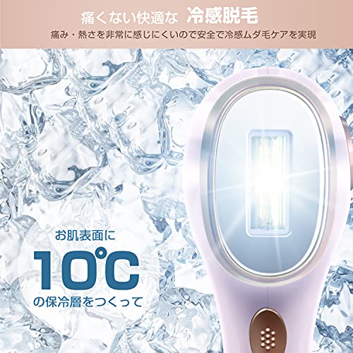 【冷却クーリング機能】 お肌を冷却しながらフラッシュさせることができ、脱毛後の高温と乾燥による皮膚表面の赤みと痛みのリスクを軽減します。敏感な部分にも使用でき、痛くない快適な脱毛体験を与えます;