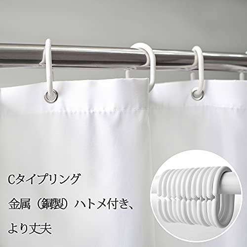 【サイズ】:巾150×丈150CM 素材:100%ポリエステル 仕様:防水防カビ パッケージ内容:本体1+カーテンリング12 カラー:ホワイト 無地