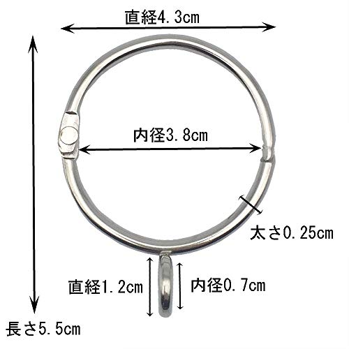シャワーカーテンリング スライドリング開口設計カーテンリングフック内径38mm 20個入り シルバー