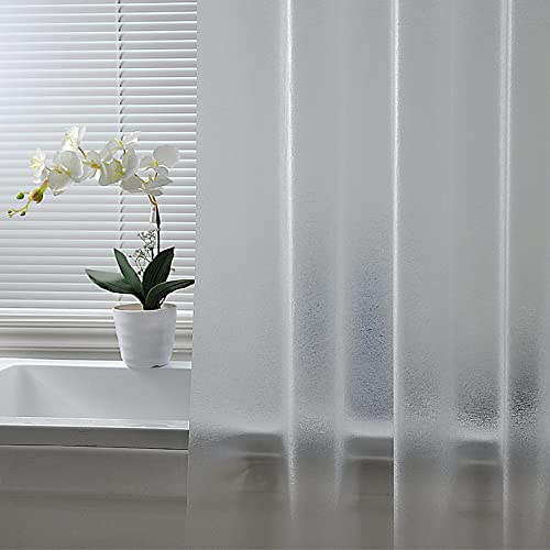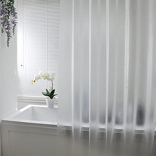 【デザイン、半透明】ビニールカーテン表面には特別加工で目隠しよく、プライバシーを保護されます。シンプルな半透明シャワーカーテンなので、バスルームがいつも明るく見えます。
