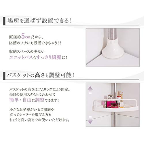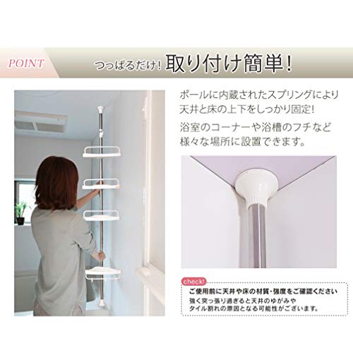 HRS コーナーラック つっぱり浴室 シャンプー ラック 浴室用ラック 突っ張り バス お風呂場 つっぱり4段 収納