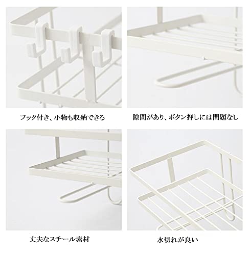 【収納力強い】浴室にシャンプー、コンディショナー、ボーディーソープなどを十分に収納できます。側面に三つのフック付きで、ブラシ、泡立てネットなどの収納にも便利です。