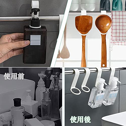 製品の使用:ディスペンサーボトルを吊り下げて整理整頓するためのディスペンサーボトル用フックホルダーセットとなっております。フックタイプですので、移動などもしやすいといえます。