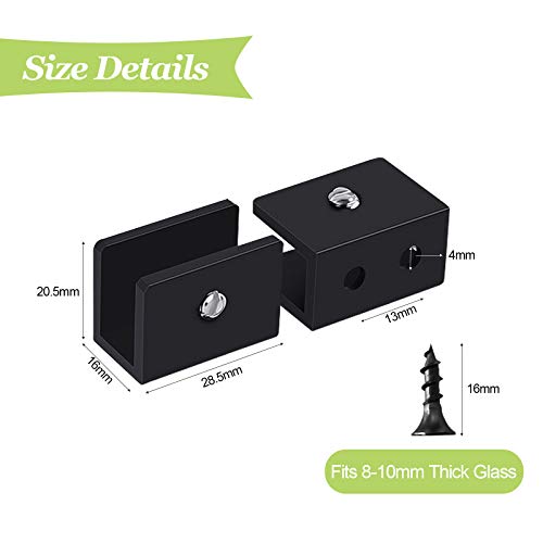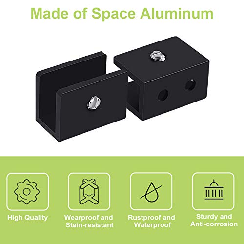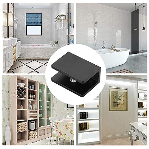 UFURMATEガラスクランプ、4個の正方形ガラスクランプ黒アルミニウム合金ガラス棚ブラケット調整可能な長方形