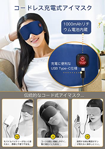 ホットアイマスク USB 充電式 アイマスク コードレス 温度調節 繰り返し使用可能 30分間自動電源オフ 遮光 出