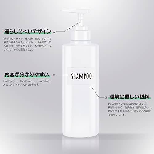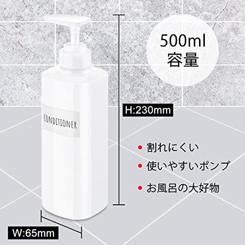 シャンプーボトル ディスペンサー segbeauty 3本セット 大容量 詰め替えボトル おしゃれ 浴室 洗面所 (白い, 500ml