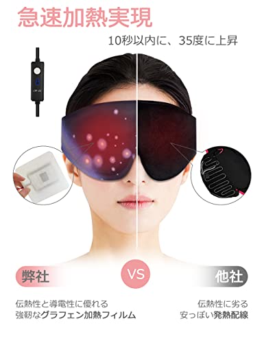 GRAPHENE TIMES 蒸気 ホットアイマスク 安眠 遮光 圧迫感なし usb加熱 3段階温度調節 1時間オートオフタイマー 3D立