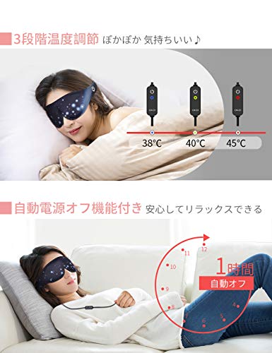 | 商品名 | GRAPHENE TIMES 蒸気 ホットアイマスク 安眠 遮光 圧迫感なし usb加熱 3段階温度調節 1時間オートオフタイマー 3D立 |