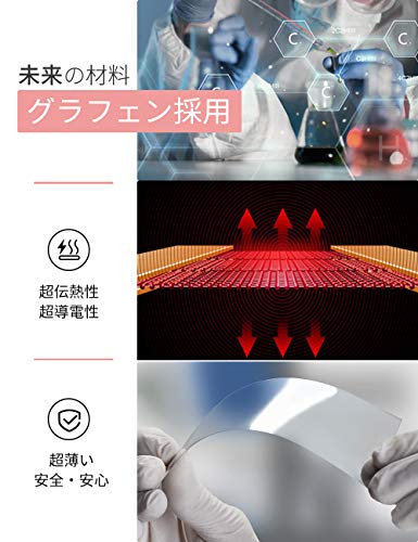 【グラフェンを採用したアイマスク】グラフェン材料は安っぽい銅発熱配線と違い、電気の伝導率は銀より高く、熱の伝導率は銅の10倍ほどなので、それを利用して作った本製品は電源に繋ぐと、急速に加熱し、10秒以内にすぐに温まります。さらに、純グラフェン発熱膜により発射された深部まで伝わる遠赤外線熱エネルギーは目にやさしく、一日30分つけるだけで、温熱効果でリラックスできます。