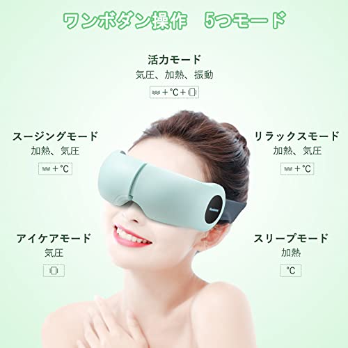 【5つインテリジェンスモード】このアイウォーマーがスリープモード{目に温め}、活力モード{気圧+振動+目に温め},リラックスモード{気圧+目に温め}、スージングモード{気圧+目に温め}、アイケアモード{振動}、五つモードから好きのモードを選べることができます。