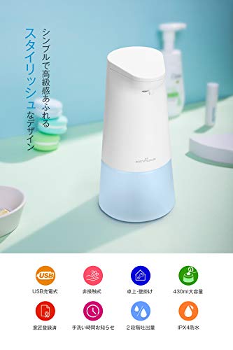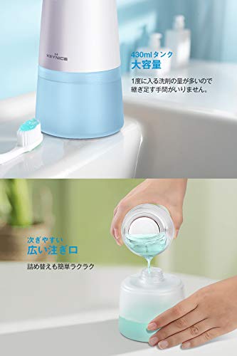 KEYNICE ソープディスペンサー usb充電式 自動 オートディスペンサー 泡 ノータッチ式 吐出量2段階調整 大容量430