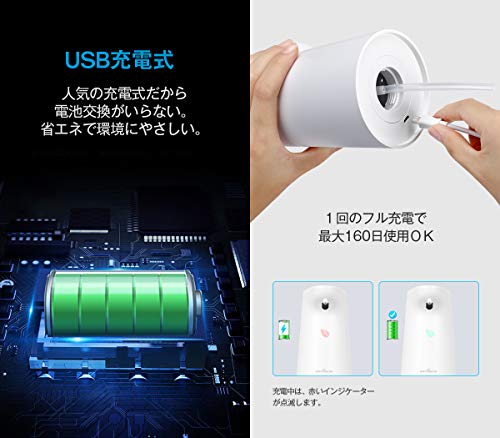 ?【コードレスusb充電式&電池交換不要】usb充電式でコードレスなので配線を気にせずお使いいただけます。電池交換が不要なので、とっても経済的!付属のUSBコードで簡単に充電することができます。1回の充電で最大160日使用が可能です。