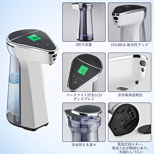 ? 【 タッチフリーで衛生的 & 手洗いが楽しみになる 】色:ホワイト。10°仰角出口デザイン、キしイに泡切り、液垂れを防ぐ、手と泡も本体に接触なし、衛生で二次汚染を避けます。手をかざすだけて、オートソープディスペンサーが感知して自動的にきめ細かな泡ハンドソープが出てくる。触る必要なく、電動式でより衛生的に手洗いができる。ハンドソープを泡立てる必要がない、プッシュの必要がない、手を洗いたくなるハンドソープディスペンサー。力の弱い子供と高齢者も快適に使用できるオートディスペンサーです。インフルエンザや風邪の流行時期や食中毒の季節にはもちろん除菌できて、今ウィルスや感染症の予防にもお役に立てます。
