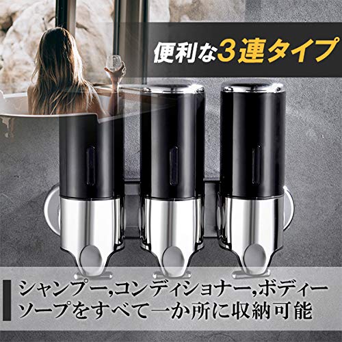 Island chief ソープディスペンサー 壁掛け シャンプー ボディーソープ 詰め替え 3連 (ブラック)