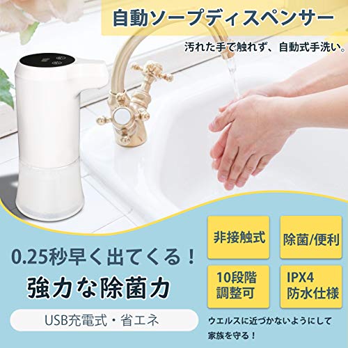 | 商品名 | ソープディスペンサー自動 10段階調整可能 泡ハンドソープ スプレーボトル贈る 充電式 usb 残量確認可能 多種 |