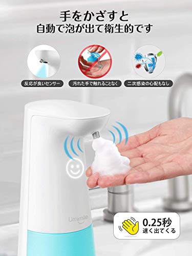 | 商品名 | Umimile ソープディスペンサー 泡 自動 ハンドソープディスペンサー オート センサー 吐出量2段階調整 250ml 電池 |