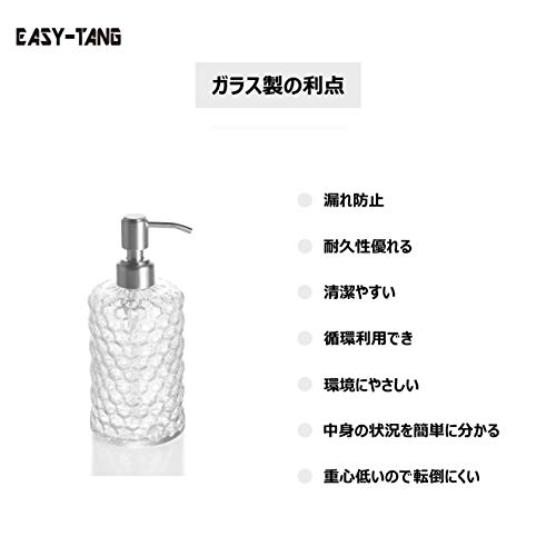 Easy-Tang 475ml シャンプーボトル ディスペンサー ガラス製 おしゃれ ポンプボトル ソープボトル シャンプー用