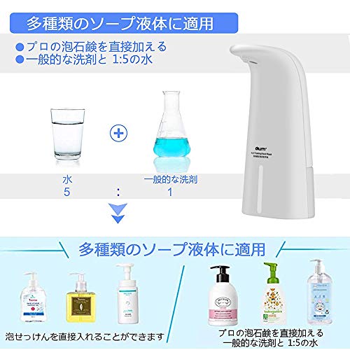 ?「ふわふわと潤滑の泡」ハンドソープだけでなく液体洗剤やシャンプーなどにも対応、汎用性の広いオートディスペンサーです。手洗い用と洗い用で使い分けると便利です。ふわふわの泡で大人だけではなく、お子さんも大喜び、楽しい泡洗いで手洗いを習慣化することも最適です。(泡タイプのソープは直接に入れて、液体洗剤は水で2-10倍に希釈してよく混ぜて下さい。)